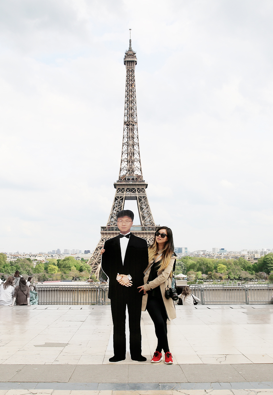 “My father never had a chance to travel the world,” Yang wrote. “He sacrificed his entire life for others – his parents, his children, his wife, his family and his friends.” Inspired by the movie “Up in the Air,” in which George Clooney’s character carries a (much smaller) cardboard cutout of his sister and her fiancé around the U.S., Yang commissioned a life-sized cutout, which she then scored and folded flat for easy transport.