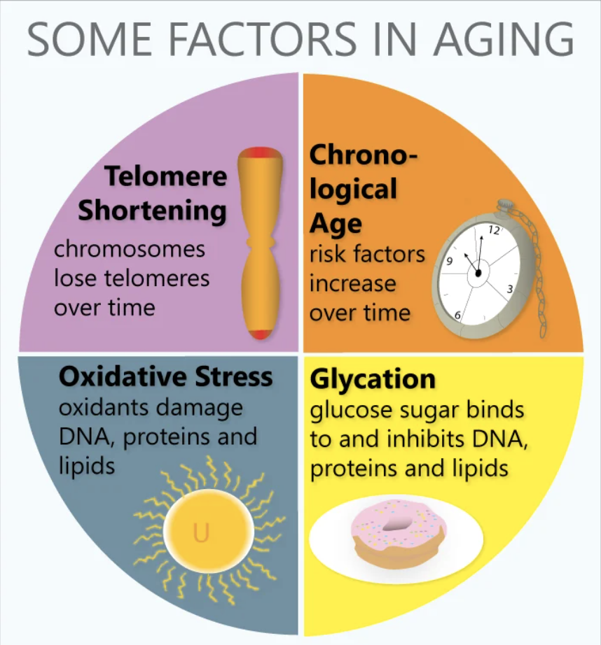 NAD+ depletion is associated with the shortening of telomere length. And shortened telomeres are closely associated with aging and death.