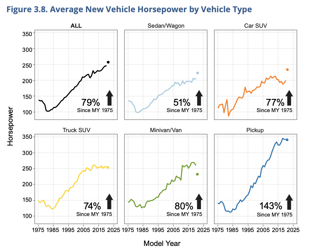 And vehicle horsepower has grown even more, rising almost 80% since 1975.