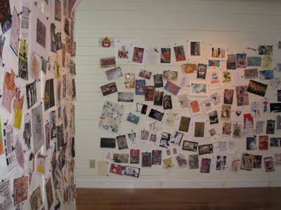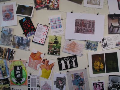 The most recent show, “The Ties That Bind”, which ran at the Second Avenue Firehouse Gallery from July 31 through September 2, 2011, pulled together the contributed art into a two-volume, hand-bound book, which were on display at the gallery, along with selected postcards pinned to the wall, and video, spoken word, performance art, and music. The show celebrates the ties that bind all human beings universally through death, as well as those that bind the artists all over the world who have participated in the project over the years. The books were created and the show curated by LuAnn Palazzo. Over 150 artists contributed to this show.