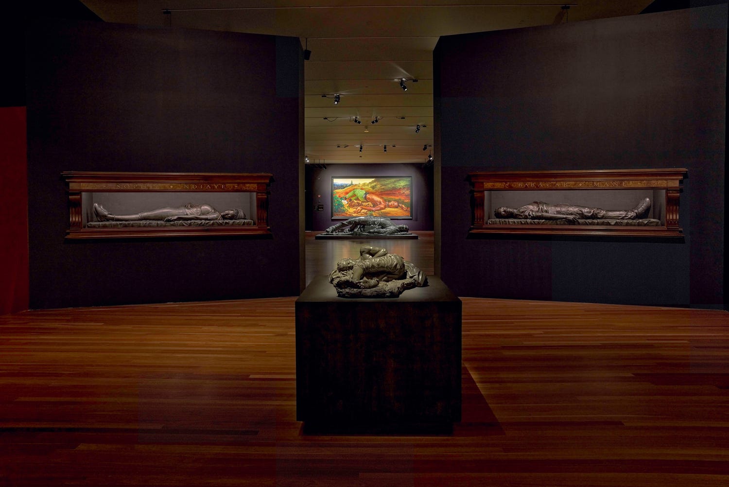 “While this work is not specifically about tomb effigies, it does relate to death, mortality, powerlessness, and the downcast figure — the juxtaposition of death and decay in the midst of a narrative of youth and redemption. It is an expression of my desire to depict the struggles of Black and Brown youth globally, through the rubric of violence and power.”