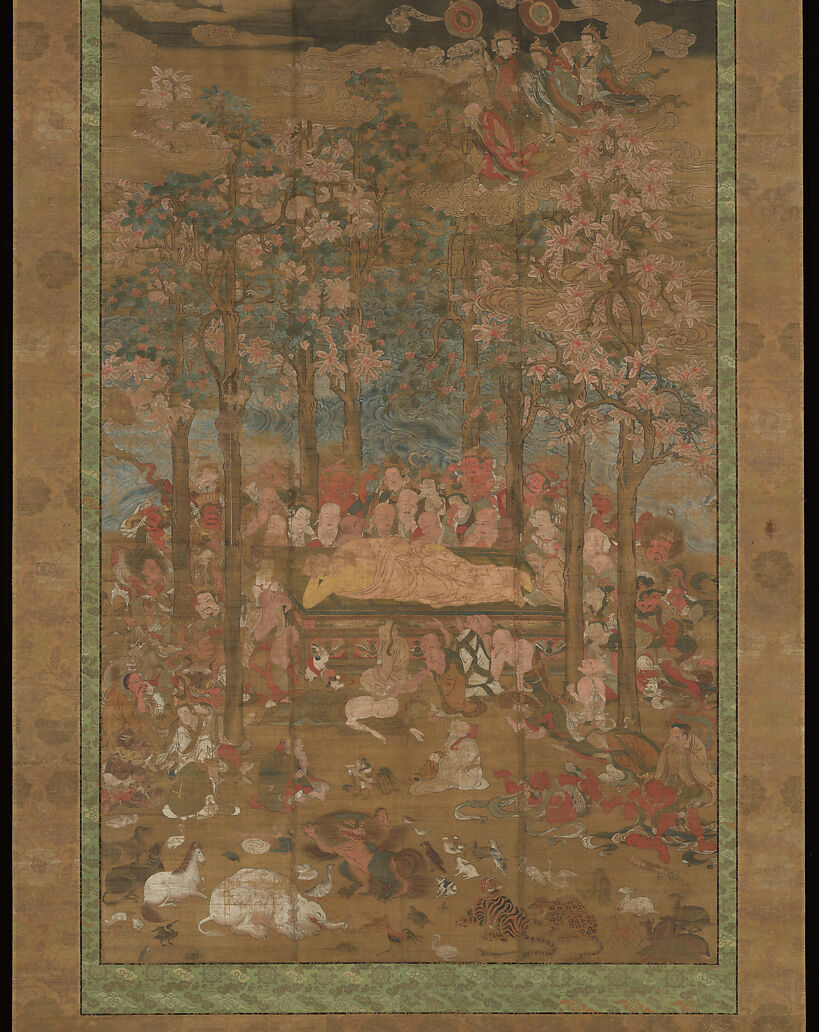 “Anxiety and Hope in Japanese Art,” the exhibit currently on display at the Metropolitan Museum of Art in New York, offers a unique look at how Japanese art has intertwined grief and suffering with ideas about rebirth. Combining sacred objects from early Japan, medieval painted scrolls, modern woodblock prints, and garments, the exhibit covers a wide range of ways that Japanese artists have responded to Buddhist conceptions of death. The pain of pain and the suffering caused by grief is fully shown in images such as “Death of the Historical Buddha,” in which followers, priests and animals are all shown weeping after the death of the Buddha. Yet the initiated know that the death of the Buddha is not the end, but rather a release from suffering, and some of his wise followers mimic the peaceful expression on Buddha’s face.